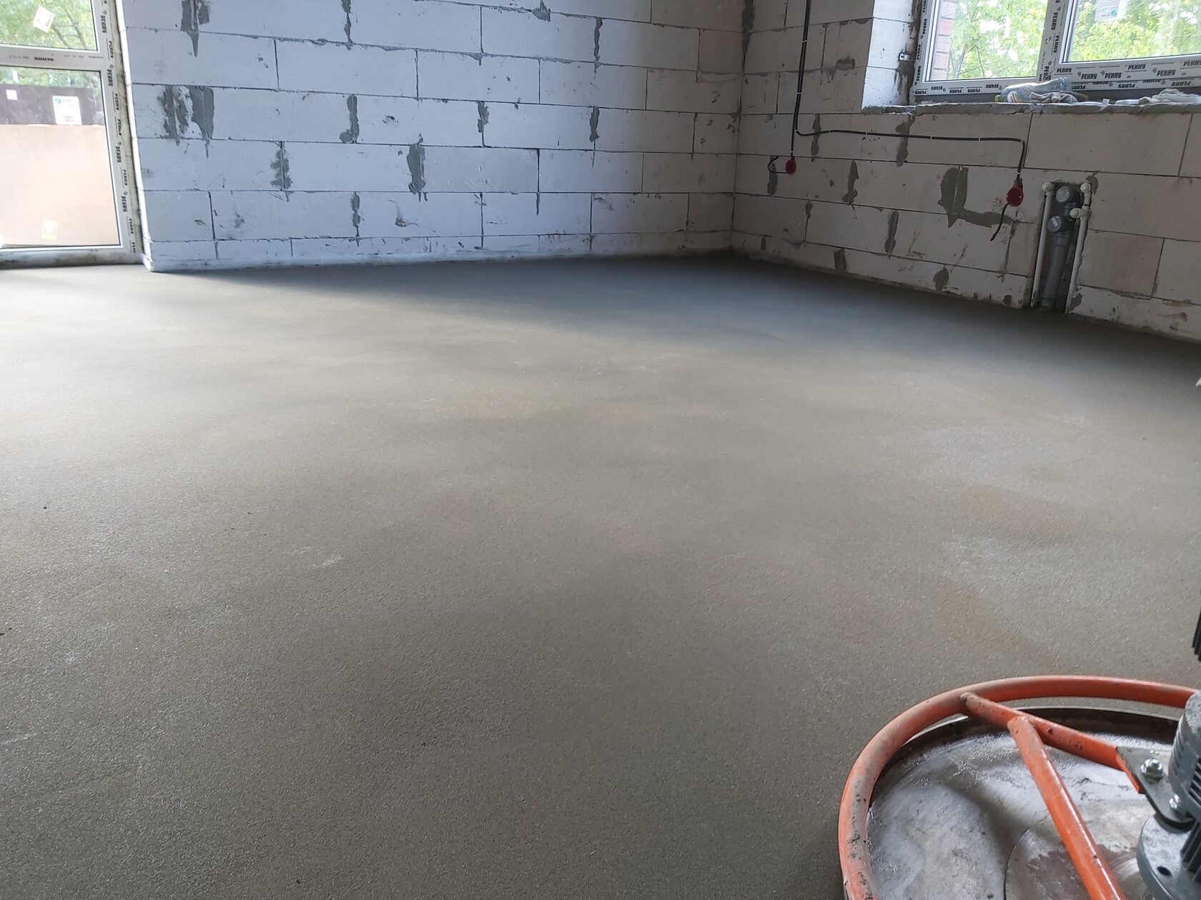 Если у вас в доме или коттедже будут лежать тёплые полы, то желательно сделать стяжку, а затем оштукатурить. После штукатурки на стяжке останутся просто белые пятна, но при укладке кафеля или ламината - это роли не играет. Если же по полу не проложены никакие коммуникации, то можно сначала сделать штукатурку, а потом стяжку. После это стяжка останется чистой без белых пятен.
